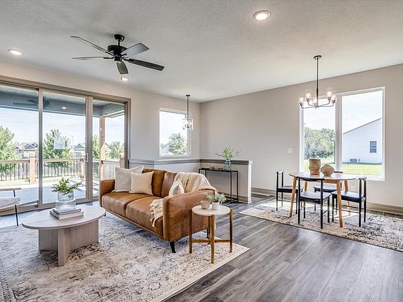 Step into comfort and style with this inviting 3 bedroom, 2 bath home by RJ Castle Custom Homes. Complete with a luxurious primary bedroom featuring a walk in closet and ensuite bathroom. The kitchen is equipped with plenty of cabinet space, perfect for storage and meal preparation. An often overlooked but loved feature is the window over the kitchen sink, this gives you the ability to look outside while doing dishes or cooking. Enjoy outdoor living on the spacious covered deck, which is ideal for relaxation or entertaining guests. Potential for future expansion exists with an unfinished basement. The basement is also available for customization with contract for an additional cost and can be finished prior to close! Nestled in the newly expanding subdivision of Southern Ridge and highly sought after Goddard School District. Amenities in the neighborhood include a large pool, sports court, walking paths and fishing ponds. Close to a major highway which makes for easy and quick access to shopping and dining options. This information is deemed reliable but not guaranteed and subject to change without notice. Specials and taxes are estimated.