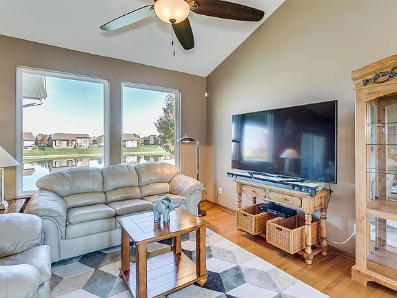 You can't find this view at such a great price, in such a great neighborhood!! Wonderful home in Hampton Lakes with three bedrooms, two bathrooms and a covered deck so you can truly enjoy the gorgeous lake view. Wood floors, split bedroom, double sinks in the master bathroom, vaulted ceiling, well, and more. You can finish the basement and add two bedrooms, a bathroom and very large rec room. Home is well taken care of and very clean! Don't miss the extra storage in the third car garage when you come out to see this home, and on your way check out how close it is to the pool and playground.