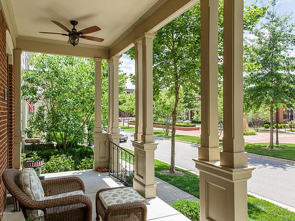 The front porch of this 4 bedroom, 3.5 bath Italianate design Homearama home with 3,315 sq. ft. faces the Meeting Street fountain and green space. The great room with a coffered ceiling, a fireplace flanked by rich wood built-ins and a dramatic brick arch opens to the magnificent chef's kitchen featuring a large breakfast bar. The dining area opens to the covered side patio expanding the entertaining area outside. The mud room offers plenty of storage, a planning desk with a framed cork board and is around the corner from the half bath with a beautiful custom vanity. Custom cabinets, hardwood flooring, extensive trim work including detailed ceiling features are just a few of the remarkable finishes. Retreat upstairs to the Master Suite with a large master