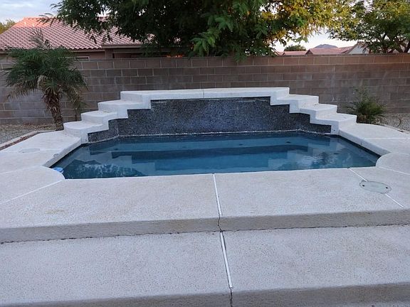 Modern home on premium corner lot. Located in the Mezquite division of Mesa Del Sol. Open Floor plan boasts vaulted ceilings and architectural shelving. Dining room flows into kitchen to allow for great family meals and entertainment. Beautiful 16" X 16" ceramic tile throughout the house, with carpet in living room and bedrooms. Cherry cabinets with stainless steel appliances, central heat & A/C and auto sprinklers. Beautiful 14' X 8' "spool" surrounded by cooldecking with built-in waterfall.