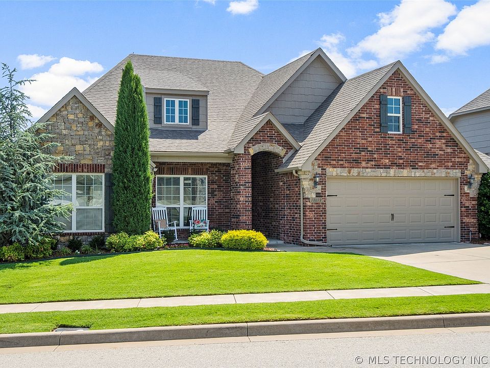 Pride of ownership and immaculately maintained, the star of GATED Brookwood of Jenks is for sale for the FIRST time! The lush landscaping on a corner lot will leave you starstruck. You’ll be greeted with a covered porch for relaxing, a storm door to let in all the natural light, and hardwood floors throughout the majority of the home. This home features 4 bedrooms (or 3 bedrooms plus an office), 2 bathrooms, and a 2 1/2 car garage, spanning 2,411 square feet on a quarter of an acre. The sought-after and functional SINGLE-STORY floor plan includes a primary bedroom split from the secondary bedrooms, an eat-in kitchen with an oversized granite island, a walk-in pantry, and a large utility room off the garage. The covered back patio is perfect for watching TV and grilling. Champagne gold fixtures, white cabinets, granite counters, and stainless steel appliances leave the kitchen feeling fresh and updated. The primary suite features a bump-out space for sitting or working out, double vanities, a jacuzzi tub, a separate shower, and a large walk-in closet.