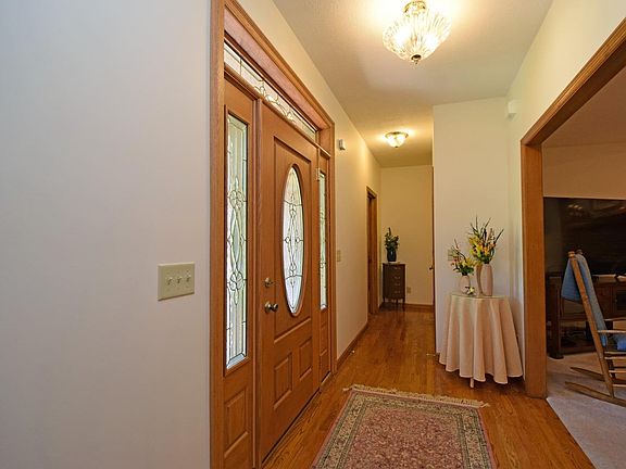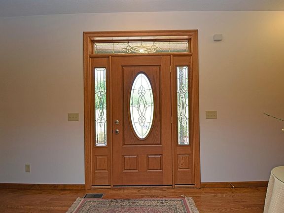 Immaculate 3 BR, custom, full-brick ranch! 2x6 construction. 2-car attached garage + 6-car detached garage with 1/2 bath & central HVAC! 1st-floor laundry, eat-in kitchen w/breakfast nook, new granite & stainless appliances! Tray ceiling, sunroom/study. Anderson windows & patio doors, new HVAC & 50 yr. dimensional shingles. Locking storm or safe room in LL. Solid oak 6-panel doors. Private 2+ acres!