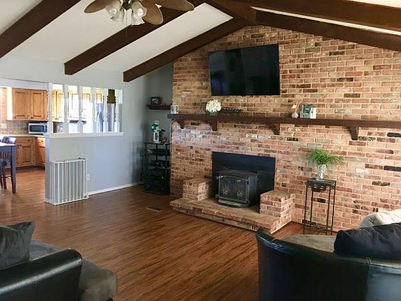 Updated 2 bed/1.5 bath brick home with open floor plan on 10 acres. Home has a 2 car garage and covered front and back porches. Approximately 1460 sqft (M/L), not including garage. Acreage is fenced with pond and a pipe corral with running water. Cellar in back yard. Open kitchen and living room, vaulted ceilings with wood beams, and large picture windows. All stainless steel appliances in kitchen. Granite countertops with tile backsplash in kitchen and bathrooms. Nice custom pull out drawers and lazy susan in kitchen cabinets. The 2 large bedrooms have vaulted ceilings with wood beams and each bedroom has 2 closets with custom closet organizers. Geothermal heating and air unit, working fireplace insert in living room. Garage has attic access for additional storage. Rural water through Lone Chimney, electric service is through Indian Electric Cooperative, home phone & DSL internet are available through Cimarron Telephone; trash service can be through Allied Waste or Davis Sanitation, Glencoe School District. Located in the Glencoe/Pawnee area, quick & easy access to Cimarron Turnpike/US 412, short commute to Stillwater, Sand Springs, Tulsa and surrounding areas. Call or text for an appointment 405-714-2863