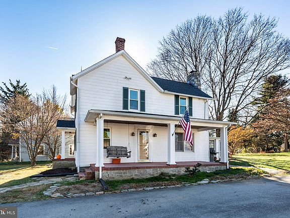 Rustic charmer from early 1900s, the the Granite District, with newer roof, siding and windows. This home will be perfect for a buyer with the vision to finish the kitchen and bath. Wood floors throughout, stone fireplace and hearth with mantel and woodstove insert. First floor has a traditional farmhouse layout with the kitchen, enclosed rear porch (storage and laundry), large double living room or use as a smaller living room and dining room. Also on first floor is another room with a full updated bath. This could be a small bedroom for someone that needs to be on the 1st floor or it would be a great office option. The second floor has 3 bedrooms and an older bath. Cellar basement/outside access. Detached garage is perfect for a small vehicle, lawn equipment or shop. Small shed for the pool equipment. Above ground pool and deck at the rear of the property with a large fenced garden area. Inviting front door w/ small porch and a great side porch with door and wooden porch swing. This is no cookie-cutter sytle home. Bring your own personal touches and creativity to update the interior. County location with convenience to Eldersburg, Randallstown, Routes 32, 26, 795 and 695,
