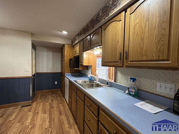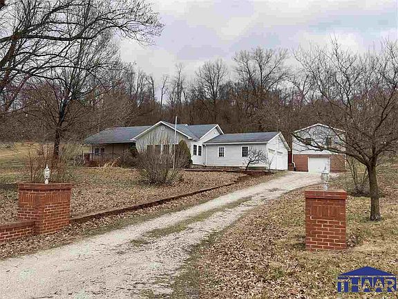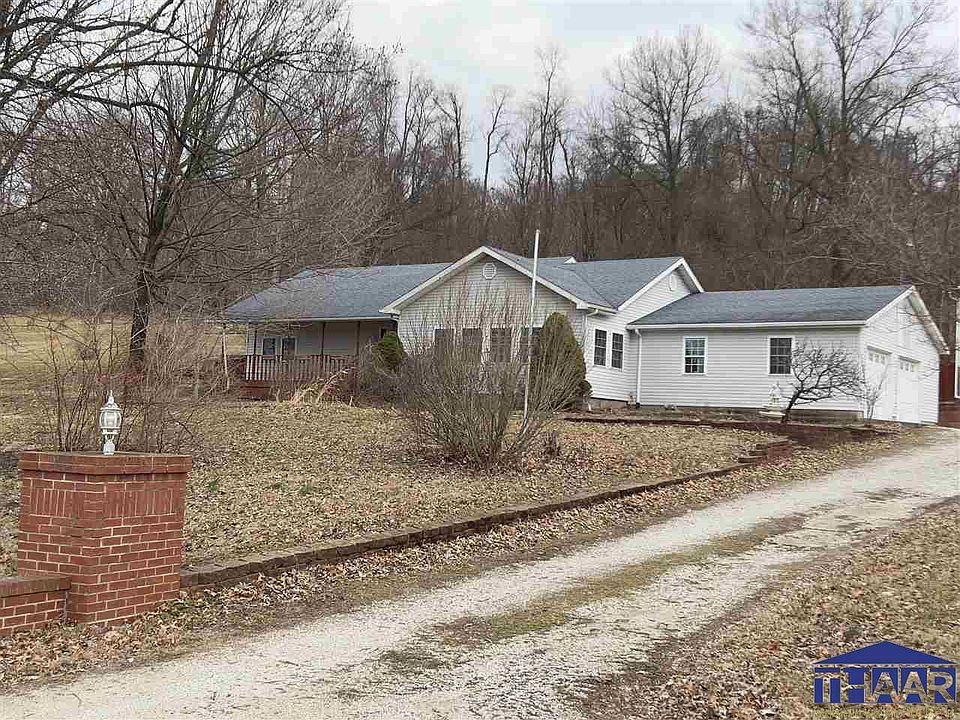 Ranch home you'll love with a Sunny living space in front of this home and an open kitchen then step down to a bright family room enhanced with a fireplace. Home has three bedrooms with the primary enSuite offering a large walk-in closet and private bath. Split bedroom floor plan with a conveniently located laundry room offering cabinetry and folding space. County setting on the north side of Terre Haute in Rosedale sits on almost an acre lot. Detached garage has an unfinished space that has many options for workshop, hobby space, home exercise space or even a rental. Note photos, some stairs in home.