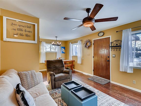 Beautiful 3 bedroom/1 bath ranch style home in the heart of Wheat Ridge located on a corner lot in quiet Cul De Sac. Walk into an open living space with tons of natural light, wood burning fireplace and hardwood floors. The kitchen features stainless steel appliances, updated white cabinets and tile backsplash. Bonus flex room off of kitchen with many use options such as office, workout room, storage area or mudroom. Spacious fenced backyard with mature landscaping for entertaining and enjoying the beautiful Colorado weather. Detached oversized garage with 220v outlet. Newer roof on both house and garage, radon system and newer vinyl windows. Enjoy being just a few blocks from the Clear Creek trail for walking, running, and biking to one of the many pocket parks; plus, having the Wheat Ridge Rec Center, Sprouts, and many other shops and restaurants nearby. With all that this well cared for home has to offer including its easy access to I-70 and downtown, this is a must see that won't last long!