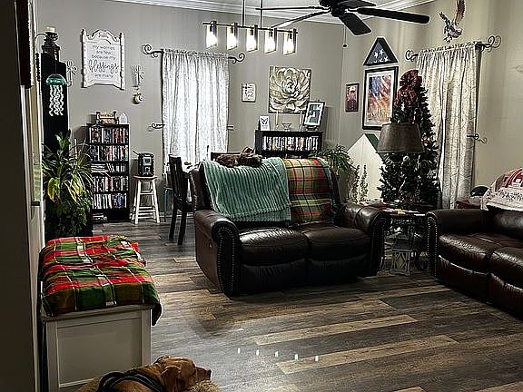 Vinyl siding home with 8x40 front porch, 16x40 deck (half covered), vinyl locking waterproof flooring, ceramic tile in kitchen and laundry room, bamboo flooring in 1 bedroom, new ceiling fans in 2 bedrooms, new farmhouse lighting in living room/dining room and hallway; well water, lawnmower shed with lean-to recently added behind home. Peaceful, country living.