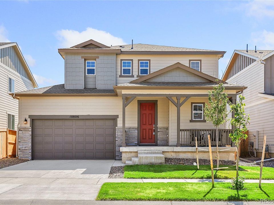 Incredible opportunity to own this like-new Craftsman-style 2-story gem in a prime Parker location. An inviting front porch provide a warm welcome to an immaculate interior that’s been tastefully designed and features brilliant natural light, tall ceilings, sleek quartz countertops, wide plank LVP flooring, 5 panel doors, and modern recessed lighting throughout. The crisp and clean neutral color palette is perfect for any décor and makes the home feel cheerful. Easily entertain family and friends from the open concept main floor that is anchored by a fireplace with a striking floor-to-ceiling tile surround. The expansive kitchen is sure to delight the home chef with its gorgeous light gray cabinetry, classic subway tile backsplash, island with seating, sprawling quartz countertop space, walk-in pantry, and stainless steel appliances! The dining nook flows seamlessly off the kitchen and open to the back patio ready for summertime BBQs. All 3 bedrooms and the laundry room, complete with new washer and dryer, are conveniently located on the 2nd floor. 2 sunny secondary bedrooms share a beautiful Jack-n-Jill full bathroom, while the impressive primary suite enjoys a walk-in closet and a private bathroom complete with double sinks and a herringbone tiled walk-in shower with pebble rock flooring. Unfinished basement ready to finish off for more living space, or use unfinished for storage or home gym. Fantastic location in a welcoming community with an extensive trail network, well-maintained parks, and quick access to highways to easily get you anywhere you need. This move-in-ready treasure needs nothing or you to do but move right in and call it home.