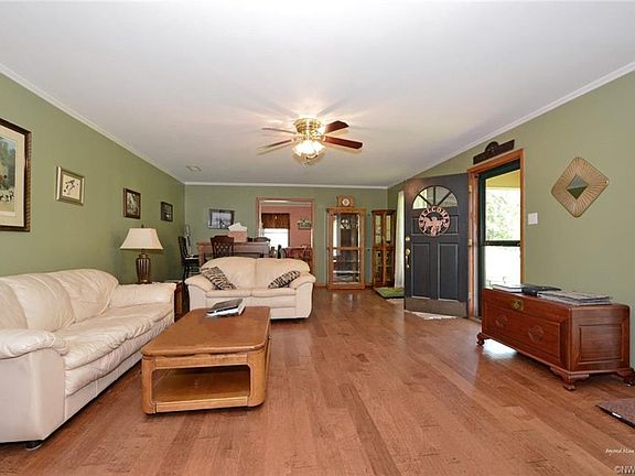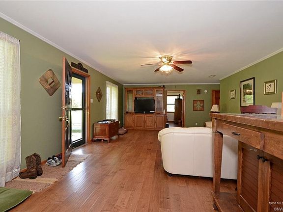 3 acre double lot, 2000+ sfha ranch style home. Horse ready with two barns, big storage bldg. w/power, two separate gated pastures, electric fence. Large 2 1/2 car garage with new doors that flow into tack/laundry room with French doors then into a 135 sq ft office which flows into kitchen/home. 5 12 year old Architectural roof on home and barn. Cover on back land to store up to 6 vehicles, trailers boats or tractors. Big eat-in kitchen, built-in curio, new oven, stove separate. Large living/dining rm.