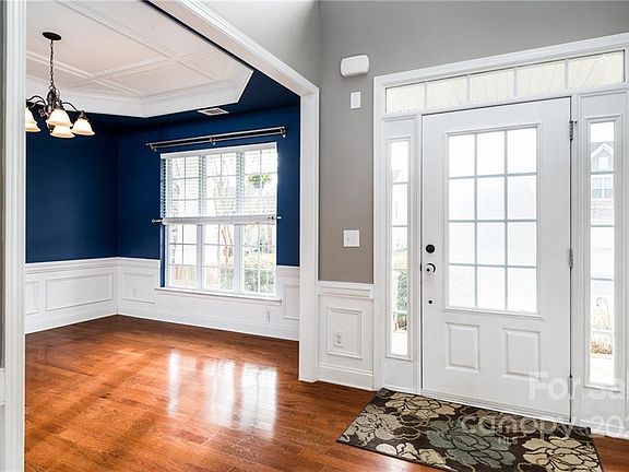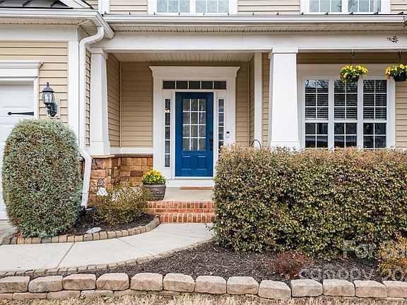 Multiple offers received. Best and final by noon 1/20/2022. Nestled away on a quiet street in the desirable Skybrook North community, you will find a lovely 5 Bed, 3 Bath home. This move in ready home has a fresh coat of paint, new roof, & is located in the highly rated Cox Mill School District. Enter to a beautiful open foyer & dining room w/tray ceiling & wainscotting, hard woods throughout the main level, & a guest bedroom with a full bath. A spacious kitchen w/granite counter tops, tile backsplash, stainless steel appliances, & breakfast bar for busy mornings. Snuggle up on cold nights in front of the gas fireplace from the comfort of your living room. The iron accented staircase leads to the upstairs primary suite detailed w/tray ceilings, a large bathroom including a relaxing tub, dual sinks, separate shower, & large walk in closet. This level also has 3 bright & airy bedrooms, one that can be used as a bonus room, & another full bath. Fenced yard. This home is A MUST SEE.