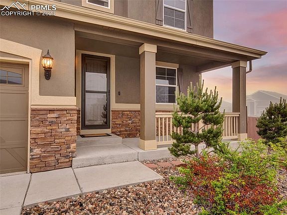 Home Sweet Home! A Meridian Ranch gem, tucked away on corner lot close to Longview Park. Fabulous flowing floor plan has everything you could need! Formal Living room welcomes you inside. Gas fireplace in Family room. Grand open Kitchen with large island counter with eating bar. Stainless appliances and granite counters. Windows wrap the Formal Dining with vaulted ceiling. The spacious Primary Suite is boasts a tray ceiling. Ensuite is finished with dual sinks, soaking tub, and walk-in shower. Don't forget the walk-in closet! Junior Suite with private bathroom plus three additional guest bedrooms. Utility room is conveniently located on upper level. Raised ceiling in garden-level basement with full windows and rough plumbing - ready to be finished to your preferences (opens to back yard). Bonus: all electrical is installed and ready for indoor/outdoor speakers. Three car attached garage provides storage space for your vehicles plus maybe a workshop as well! Enjoy summer grilling on back deck overlooking fully fenced yard with raised garden space and plenty of room to play for Fido and friends. Community amenities include miles of trails for biking/hiking, golf course, swimming pool, club house, and more! Just minutes from downtown Falcon for all of your shopping and entertainment needs.