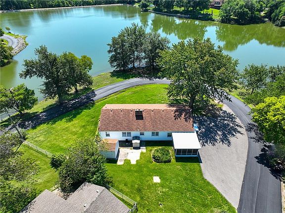 Newly Improved: Wallpaper removed, fresh interior paint, new carpet and electrical work completed! This solid home boasts 3 spacious bedrooms on a corner lot that is a prime lake view of Wildwood Lake right in the heart of Raytown! Greeted by an inviting living room with large wood-burning fireplace, gorgeous views of Lake and plenty of natural light that flows seamlessly into the spacious country kitchen that is bright and open! The primary bedroom provides the ultimate convenience and comfort. The two additional bedrooms are generously sized and feature spacious closets, providing plenty of room for relaxation and storage - all with hardwood floors. The front covered porch is perfect for enjoying a morning coffee or hosting a BBQ with family and friends - all while relaxing and taking in the view of the Lake. The yard is spacious, offering a place for children and pets to play. Also enjoy the screened in porch and storage offered in the sheds that stay! Unfinished basement with 2nd bathroom (which needs work) offers room for additional space. Located in a quiet neighborhood just minutes away from local parks, schools, and shopping centers, this property is the perfect place to call home. Don't miss your chance to own this exceptional property - schedule your visit today!