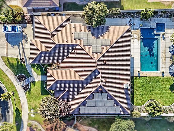 Welcome to this beautifully maintained 4-bed, 3-bath home with an office, located in the prestigious Brighton Estates Gated Community. Nestled in a quiet cul-de-sac, this home offers OWNED solar and countless amenities for its next owner. Step inside to be greeted by high ceilings and a grand formal entryway. The front of the home features a formal dining room and office for convenience. The gourmet kitchen boasts granite countertops, stainless steel appliances, and a spacious pantry. Enjoy natural light streaming through the large windows in the living area, complete with an elegant stone fireplace. All bedrooms offer generous closets and ceiling fans, with impeccably maintained bathrooms. Outside, you'll find a large covered patio, built-in firepit, sparkling quartz-finished pool and spa, expansive side yards, and a dog run. This home is a perfect blend of luxury and comfortschedule your showing today!