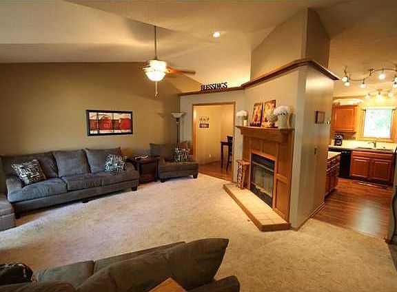 NICELY UPDATED RANCH WITH GREAT COLORS AND DECOR. THIS HOME HAS BEEN WELL TAKEN CARE OF AND FEATURES UPGRADES THHROUGHOUT. NEW KITCHEN APPLIANCES, SINK & FIXTURES AND BEAUTIFUL LAMINATE FLOORING. NEW DOOR HARDWARE, PLUMBING FIXTURES AND TILE IN THE BATHROOMS. LARGE LIVING ROOM WITH VAULTED CEILINGS AND BEAUTIFUL FIREPLACE. LARGE BASEMENT REC ROOM ALSO HAS FIREPLACE AND A BEDROOM AND BATH. MAIN FLOOR LAUNDRY/MUD ROOM OFF THE GARAGE. FRESH LANDSCAPING AND MULCH WITH EASY TO MAINTAIN YARD WITH SPRINLKER SYSTEM. BEAUTIFUL SUNROOM IS ADJACENT TO THE EATING AREA.