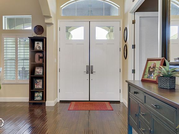 Beautiful home located in gated Brighton Estates. Four bedrooms, 2 1/2 bathrooms, three-car garage. Large cul-de-sac lot with swimming pool, rock waterfall, covered patio with ceiling fans. 8-foot double door entry with wood floors and crown molding. Elegant formal dining room with wood floors, recessed lighting in trayed ceiling with crown molding. The kitchen opens to the family room with fireplace and crown molding. Kitchen has granite countertops, an island, and lots of storage. Main suite with separate spa tub and shower. Split wing plan, Built-in cabinets in one of the bedrooms. Laundry room with cabinets and sink. Quality, built by California Home Builders.