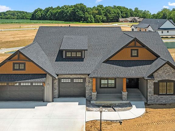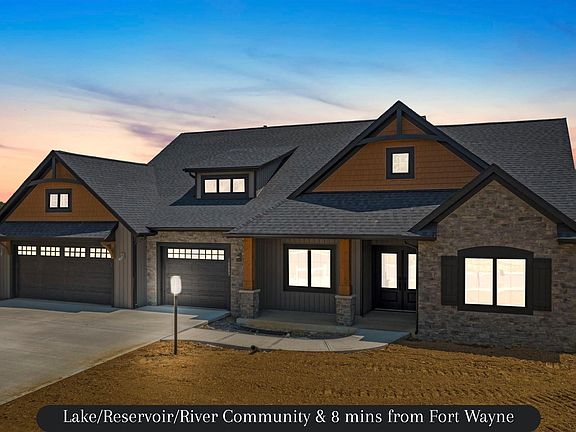 OPEN HOUSE SUNDAY 1–4 PM! Discover The Cedar Summit by Star Homes by Delagrange & Richhart, an architectural showpiece blending modern French-inspired design with timeless luxury. Nestled in Makarios Place, a 415-acre lakefront community connected to the St. Joe River, this neighborhood is where nature, recreation, and refinement converge. Just 8 minutes east of Leo Crossing, Makarios Place offers exclusive access to the St. Joseph River and Leo Reservoir, ideal for boating, kayaking, and tranquil escapes—while still being moments from local coffee shops, boutiques, restaurants, and community pickleball courts. Step inside this 2,787 sq ft masterpiece where every detail is crafted to impress. A barrel-vaulted foyer welcomes you through double glass doors, leading to elegant arched openings, an executive office, and private guest suite. The Great Room soars with 10’ double-beam stained ceilings, triple Andersen windows, and a floor-to-ceiling stone fireplace—one of two statement hearths that define this home. The chef’s kitchen blends form and function with nimbus-stained ceiling-height cabinetry, Italian stone backsplash, 8’ quartz island, gas range, hidden pantry, and under-cabinet lighting. A bespoke dry bar and buffet seamlessly connect to the vaulted dining room with floating solid-wood shelves and a designer chandelier. Enjoy year-round comfort in the all-season sunroom overlooking the pond, featuring a tongue-and-groove vaulted ceiling and custom glass doors opening to the covered outdoor living area—complete with fireplace and multiple seating zones. The primary suite offers pure tranquility with Thunder Grey finishes, double crown molding, and a spa-inspired bath with 10’ tiled shower, quartz vanities, and bespoke lighting. A custom walk-in closet, upper-level retreat with full bath, and luxe laundry suite add everyday convenience and flexibility. Finishing touches include: • 851 sq ft 3-car garage with designer drop zone • Dark brass hardware throughout • Lush landscaping & outdoor lighting package Makarios Place isn’t just a neighborhood—it’s a lifestyle defined by water, wellness, and wonder.
