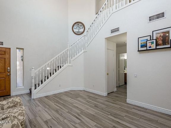 You will not be disappointed with this home! This home is ready to for you to move right in. It is conveniently located near the 60 freeway and Signal Butte. The backyard offers a grassy area and an entertaining BBQ! The soaring ceilings are incredible upon entry to this home. You will be impressed with this open floorplan and how grand it feels as you move into the kitchen and dining rooms. Upstairs is the multi functional loft area, which can be for a media room or home office. The large main room the same wood like flooring. The en suite main room bathroom also has a dual sink vanity. This home is directly next to the community park. Everything you need in a home is right here!