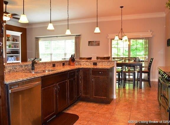 Beautiful 5 Bedroom, 3 full bath, brick and stone, CUSTOM built home w/ OVER 3,800 sq ft of finished space! As you enter you will be greeted with a BRIGHT open floor plan with 10', and MULTI-TRAY CEILINGS, lots of WAINSCOTING, and a FORMAL DINING ROOM! Custom BUILT-IN CABINETRY surrounds your FIREPLACE to cozy up around. Hang up your belongings in custom locker style shelving after you park in your extra DEEP 2 car garage. HUGE WALK-IN PANTRY, with STAINLESS STEEL GAS RANGE supplied by an outdoor propane tank. COVERED BACK PORCH, view of woods or animals lurk as a view outside your PRIVACY FENCE in back yard. SPLIT FLOOR PLAN upstairs. Master suite with LED ROPE LIGHTING IN TRY CEILING, DUAL SHOWER HEADS, WHIRLPOOL TUB, and laundry in the convenience of your walk-in closet. 2 bathrooms feature POCKET DOORS! Walk out basement features HUGE LIVING SPACE, GAME/REC ROOM (with roughed-in sink for WET BAR), full bathroom, over-sized bedroom with walk-in closet, another bedroom with lots of window light and walk-in closet, AND a garden/utility garage. If that wasn't enough you still have an unfinished storage area, as well as ANOTHER washer and dryer area . You have to see this stunning home. It won't last! Call for your private showing today!!