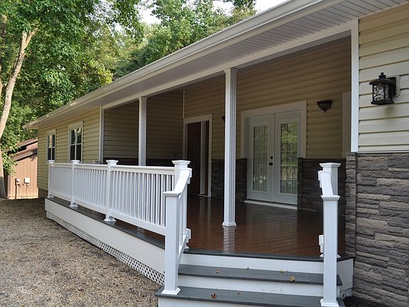 Stunning renovation/remodel!! Rancher is almost like a brand new home. Open floor plan with grand high vaulted ceiling in living and dining rooms and kitchen. Breathtaking view, lovely Trex front porch with french door to the newly enlarged kitchen. Extra bedroom added in the lower level, increasing living space from the original plan. Beautiful, level lot backs to the river with an amazing view.