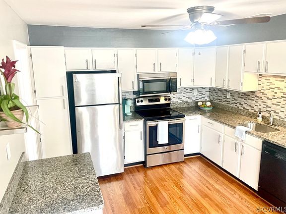 Come fall in love with this updated and beautifully maintaned townhome in sought after Sussex Woods! Foyer welcomes you with tons of natural light, leading into large eat-in kitchen boasting stainless steel appliances, granite counter tops, backsplash, and bay window. Living room offers wood-burning fireplace and French doors, overlooking fenced in backyard, newly sodded, with large storage shed! Upstairs you'll find large primary suite with bay window, walk in closet, new light fixtures, and full bath. Second primary with attached full bath and large closet makes perfect guest room, additional bedroom, home office, gym, or hang out space! Upstairs laundry room with storage. New laminate flooring all throughout, fresh paint, and new hot water heater, this one is turn-key and ready for you to call it home! All this in top Henrico school district, and short distance to Short Pump shopping and dining. Maintentance free with lawn care provided! This one checks all the boxes--come schedule your showing today!