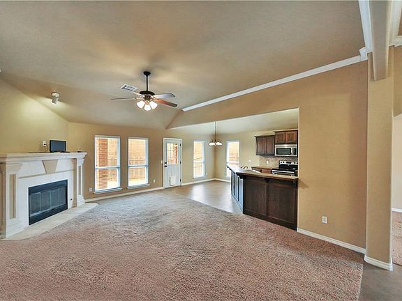 Nice clean and move in ready! Open floor plan featuring living room with a fireplace ~ kitchen with eating area, breakfast bar, large pantry! 2nd living or dining room ! All secondary bedrooms are a good size with large closets! Large master bedroom with walk-in closet, double vanities, shower and tub! Storm shelter in garage! Security system! Shed in backyard! Wired for surround sound! Dishwasher, kitchen faucet and disposal only 3 months old! A/C 3 ton condenser new 2017! Great neighborhood with a playground and minutes from Tinker and all Midwest Shopping and dining!