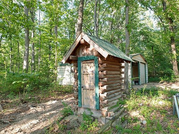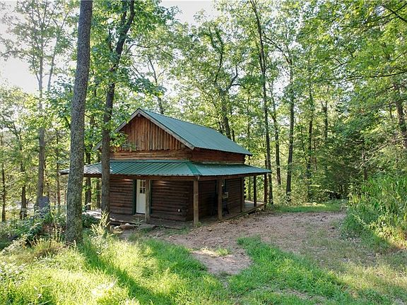 Come explore this secluded log cabin sitting on 8.58 acres. Many opportunities await you here! The wrap-around porch makes this cabin perfect for sitting and enjoying the peace and quiet. With a shared 2.7 acre stocked lake in your backyard and Big Buffalo Creek conservation grounds just 10 miles away, your freezer will be stocked year round if you choose to put the time in! The lake directly behind the cabin is shared with your neighbor but granted with 100% use to the new owners of this property. There is a 2 car garage on a concrete slab included with this property- along with a finished outhouse with a metal roof.
