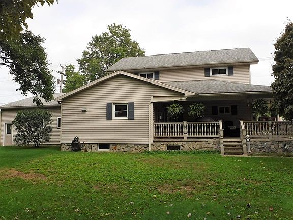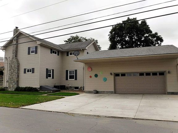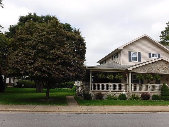 Beautiful in town farmhouse style two story with vinyl and stone on a corner lot. Wrap around covered front porch with dual entry. This completely renovated home has a large kitchen with granite counters and stainless steel appliances. Beautiful hardwood floors throughout. First floor family room with built ins and gas fireplace. Full bath with custom tiled shower and laundry room complete