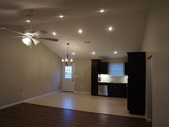 New home, move in ready! Gourmet custom kitchen with 2 - Pull out pantries, granite countertops and under mount cabinet lights. Stainless dishwasher built in microwave and range. Large rooms, cathedral ceiling in great room, kitchen and dining room. Double bowl sinks in bathroom vanities. Extra large shower in master bedroom. His an Her closets. No carpet! Extra large utility room with laundry sink and room for freezer. Automatic garage door opener included. All brick home very energy efficient. Great open floor plan!