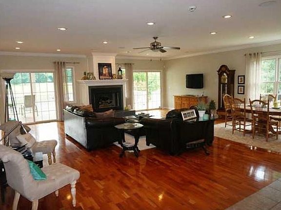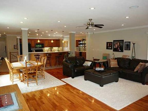 Lakefront Luxury! Main level has plenty of dining and entertaining spaces with open great rm Kitchen with cherry cabinets and corian tops and bar. Serving and entertaining bars flank both ends of the kitchen. One for coffee and one for cocktails! Large mud rm, laundry rm with tile backsplash, walk in pantry, and more. Finished lower level has bar, 3 BR, 3 Baths, craft r,m, and huge 1200 sq ft storage rm. 14x40 deck and patio give year round fun. Crown molding, hardwd flrs, wood shelving.