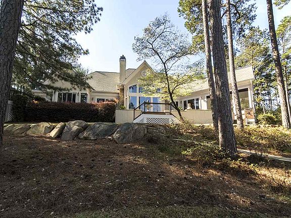 Beautifully designed four bedroom custom home in Reynolds Lake Oconee offers beautiful pond and nature views from every room. The open floor plan includes a spacious great room with a soaring 19-foot ceiling and stone fireplace with built-ins, a gourmet kitchen with beautiful cherry cabinetry and granite countertops, double convection ovens, warming drawer and an island with gas cooktop and retractable vent system, breakfast area and dining room. The great room features a full wall of windows which maximizes the natural light and accentuates the panoramic pond views. A wonderful screened porch with a 15-ft pine ceiling, cedar beams and slate floor is the place to relax and take in the incredible sunsets. An open deck sits adjacent to a stone patio with a wide flagstone pathway curving down to the 6 ½ acre pond. The master bedroom features a trey ceiling, ensuite bath and huge walk-in closet and opens to a swim spa on the outside deck overlooking the pond. Also on the main level is an additional second bedroom, a full and a half bath and separate his and her office spaces. The upper level offers two additional bedrooms and a full bath. A three-car attached garage with deep bays has an unfinished attic space that would be perfect for a rec room or other expansion. Seller is making a golf membership available.