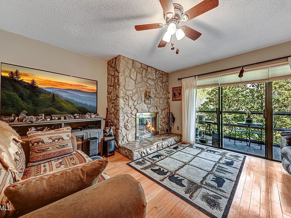 Welcome to your perfect investment property or full-time residence in the beautiful gated community of English Mountain Condos! This charming one-bedroom, one-bath chalet-style condo boasts an open floor plan with a spacious living room featuring a river rock fireplace and hardwood floors. The kitchen offers plenty of counter and cabinet space, making meal prep a breeze. Enjoy the peaceful mountain views from your private balcony. English Mountain Condos offers a wealth of amenities, including a pool and clubhouse, grill area, picnic area, and on-site coin laundry and limited cable package. General maintenance, water, sewer, and trash service are all included in the HOA fee, with no transfer fee to the new owner. This quiet condo community is the perfect getaway, located just minutes from shopping, dining, entertainment, and the Great Smoky Mountains National Park. If you have questions regarding restrictions or plan on renting the condo as a short-term rental, please contact the HOA for more information. Don't miss this opportunity to own a piece of paradise in the heart of the Smokies. Come see it today!