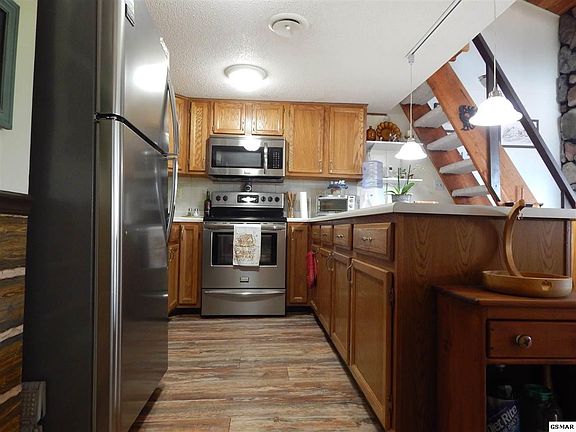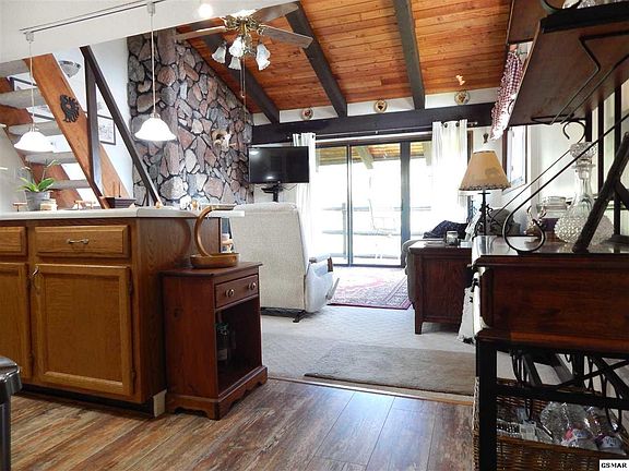 1081 Cove RD U634, Sevierville, TN 37876 is a beautiful, well-maintained, 1 bedroom, 1 bath, 813+/- SF, loft condo in a gated English Mountain Condos with a mountain view! This condo is an end unit. It features a stone, wood-burning fireplace, wrap-around covered deck, new Thermopane sliding glass doors, new paint in the bedroom and loft, new window over couch and new tile shower! The stainless kitchen appliances and washer/dryer combo unit are newer. Updated kitchen cabinets. The deck was resurfaced in 2018. 831+/- SF under roof. 813+/- SF usable SF due to slope of roof in loft. HOA is $332/month and include water/sewer, trash pick up, pool, pool house/owner's club, sauna, clubhouse with WIFI, laundry facility (coin operated) and maintenance on: exterior, lawn and landscaping, pool, pool house/owner's club, club house and laundry room. Satellite fee is $93.96 every 6 months and billed on the HOA invoice in Jan. & July. A short drive to Douglas Lake, convenient stores, New Center School, Food City, Sevier County High School and downtown Sevierville or Newport. Note: The 2 end tables, Antique trunk, Rams' head, vacuum, basket swing chair on deck, mini-water cooler, PUR water pitcher, night stand in bedroom and 3 prints do NOT stay/convey along with other personal items. Buyer should verify all info that is important to them including square footage, HOA and satellite fees and restrictions, etc. Info is deemed correct, but not guaranteed by listing agent or company.
