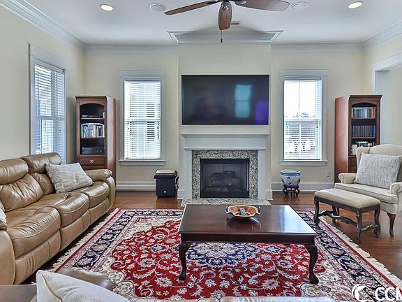 Welcome to 1081 Means Cir, located in the desirable Sweetgrass Square Community in The Market Commons. This stunning 3-story home boasts 5 bedrooms and 3.5 bathrooms and is sure to impress with its beautiful features and convenient amenities. Enter through the gated driveway and park in your rear entry 3-car garage, providing both security and ample space for your vehicles. The open and bright living room offers plenty of natural light with balcony access, and a cozy fireplace perfect for relaxing on chilly evenings. The kitchen is a chef's dream with attractive stainless steel appliances including a gas cooktop, built-in oven, and microwave. You'll love the spacious pantry, large island, breakfast bar, granite countertops, solid wood cabinets with ample storage, and two sinks, making meal prep and entertaining a breeze. The master suite is a true oasis with lots of natural light, a spacious sitting area, and an oversized custom walk-in closet with built-in storage. The luxurious bathroom offers a gorgeous garden tub, a roomy walk-in shower, and a double-sink vanity with lots of undercounter storage. With an elevator to help you navigate the three floors, you'll appreciate the convenience and accessibility of this beautiful home. Additional features include a formal dining room, a large storage closet, and two laundry rooms with storage potential. Out front, relax on the porch or take in the sights and sounds of the neighborhood from the spacious balcony above. In the back, entertain guests on the patio with a covered gondola and grilling area. Located within walking distance to all the shopping, dining, and entertainment that Market Commons has to offer, this home is also just minutes from Myrtle Beach State Park, Surfside Beach, Coastal Grand Mall, Broadway at the Beach, Garden City Pier, Brookgreen Gardens, golf courses, shopping, restaurants, and endless entertainment. Don't miss out on the opportunity to call this incredible property your new home. Schedule a tour today and see for yourself why 1081 Means Cir is the perfect place to live.