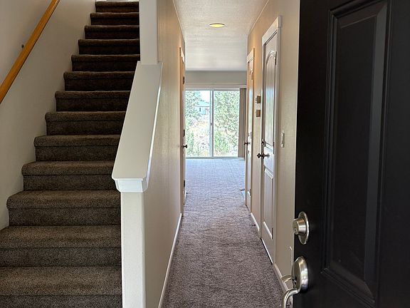 Owner managed, our residents call it "home"! Available August 4th. Very nice, quiet, off- street Townhouse Style duplex on large wooded park-like lot, backs to canal with mountain view. Very clean, with fresh paint. 3 BR, 2.5 bath, open dining area, living rm area, kitchen. Convenient upstairs washer and dryer included. Large 60 sq.ft. walk-in closet off master, upstairs bonus area with room for a desk. Linen closet upstairs near laundry, pantry off kitchen. One car garage + one outside parking space. Private paved patio area off living room with direct access to natural terrain along canal. Possibly not suitable for small wandering children due to open back yard backing on canal. Water and Sewer included. No pets, no smoking or vaping. Deposit $2500. One year lease required. Again, available August 4th. App fee $40. PLEASE DO NOT WALK IN OR ENTER PROPERTY LIMITS. Respond by telephone, text, or email to arrange viewing. If no answer leave msg. for a call back. Kayak Loop, Bend 97701.