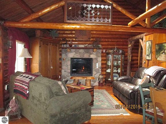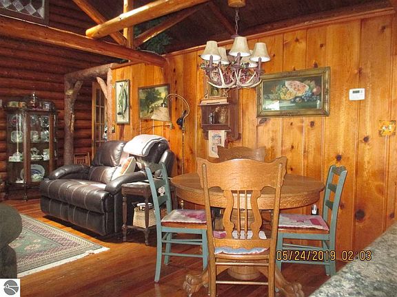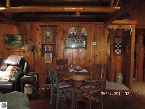 Beautiful Cottage or year round home with many updates in 2010. Featuring.... new well ,beamed ceilings, knotty pine, new stainless appliances, stone natural gas fireplace, new bathroom, ceramic tile entry, sky lights in main living area, and a covered front entry. The 2 car garage has insulated walls and garage doors with a free standing natural gas stove, pull down storage, new metal roof on all buildings. The yard is very tastefully landscaped with many perennial, shrubs, and trees. The spacious lot has a space for RV parking, private fenced back yard, fire pit area, and a nice deck area to entertain & eat dinner. If your worried about room for extra sleeping space the third detached garage is finished inside and could be used for family or company over flow.The attached garage is also insulated and heated and could be used for sleeping area . You have a deeded access just across the street for swimming, and a nice view from your house of beautiful Lake Huron.