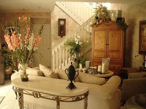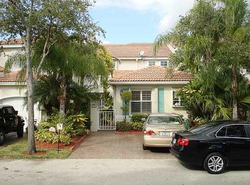Stunning Mediterranean style Townhouse completely upgraded! This former model home is right out of a designer magazine. Features include new kitchen with granite counters, stainless steal appliances, pullout pantry, plantation shutters throughout, built -in cabinetry, computer station, desk, Murphy Bed, new drapes, tiled floors, crown molding, beautifuly decorated lush, tropical garden, accordian hurricane shutters and more! A turn key unit that you have to see to appreciate.
