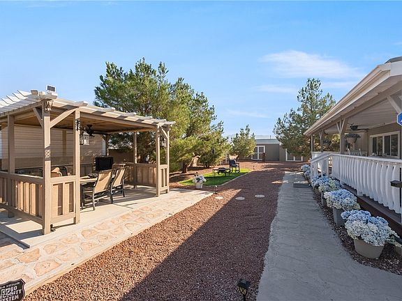 This charming, move-in ready manufactured home sits on a beautifully landscaped quarter-acre lot, offering 1,222 sq. ft. of cozy living space. The home features 3 bedrooms and 2 baths, along with a welcoming country-style kitchen equipped with stainless steel appliances and a warm and welcoming pellet stove. Enjoy outdoor living with a long, covered front porch, 2 fire pits, gazebo, swing and spacious back porch, perfect for relaxation. The property boasts two large outbuildings, RV parking with full hookups, and an RV gate for easy access. The fully fenced yard includes all yard art and porch furniture as viewed. The home also has a water softener, making this a delightful, well-maintained retreat.