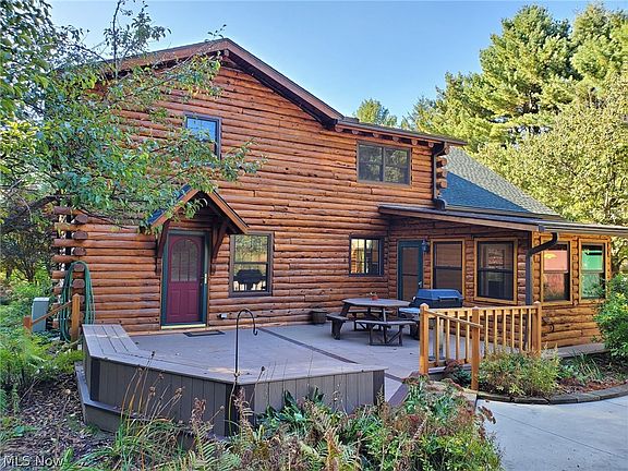 Fabulous Find In Sharon Center! Beautiful Log Home (Made From Lodgepole Pine) Awaits You On This 3+ Acres Of Paradise. Home Features Inviting Front Porch, Open Great Room With 2 Story Wood Burning Fireplace & Dining Room That Leads To Sunroom, Kitchen With Granite Counters, First Floor Laundry & First Floor Bedroom & Bath. Second Floor Has Loft That Overlooks The Great Room, Large Bedroom That Could Also Be Used As The Master, Full Bath With Tiled Shower & Tub Along With Double Sinks, And Third Bedroom. Full Basement Is Partially Finished With Rec Room & Bonus Area, Unfinished Area For Storage & Another Unfinished Area With Utility Tub & Bilco Door For Outside Access. Enjoy The Maintenance Free Composite Deck With Picnic Table & Built In Bench, 3 Car Garage, Nice Concrete Drive & Treed Yard. Updates Include House Roof (2018), Sunroom Windows (2018), Azek Deck (2018), Logs Restored To Original Color (2018), Furnace & Hot Water Tank (2012), Mitsubishi Wall Air Conditioning System (2