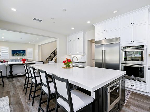 Bright, beautiful, highly-upgraded, move-in ready home in the gated neighborhood of "The Oaks at Portola Hills." The 2018-built home is in pristine, model-home condition and features a plethora of luxury amenities. The chef's kitchen features stainless steel KitchenAid appliances and an 11-foot white quartz island with marble countertops/ backsplash. Upgraded white cabinetry extends to the ceiling, providing ample storage space. A separate prep kitchen/ craft room with its own full-sized refrigerator and walk-in pantry complete the kitchen area. The dining room boasts a fireplace and dramatic two-story ceilings. Floor-to-ceiling sliding glass doors open to the California Room and private back yard. The yard has a travertine patio, lush landscaping, premium cool-touch green turf, a built-in BBQ and fountain. A downstairs bedroom (with ensuite bathroom including a shower) is perfect as an office or bedroom. Upstairs, 3 bedrooms, 2 full bathrooms and a cozy media loft await you. The primary suite's bathroom includes Italian marble countertops, two separate closets with custom built-ins, two separate vanities, and a makeup counter area. Custom white shutters throughout. As a resident of The Oaks at Portola Hills, you may enjoy a resort style pool with two spas (with fob key access) and dog parks, all located across Glen Ranch Road. For mountain biking and hiking, an entrance to the Whiting Ranch Wilderness Park is located at the end of the street. A cute playground with picnic area is conveniently located within the neighborhood gates. Located atop Portola Hills, close to the Portola Parkway exit on the 241 Toll Road. Near an abundance of shopping, restaurants, schools and sports parks. Note: Includes use of designer furnishings that have been curated from high end retailers, primarily Restoration Hardware and Room & Board. The monthly rental amount includes HOA dues, gardening service and fountain maintenance service. Tenant to pay for all utilities. HOA dues, gardening service and fountain maintenance service included. Absolutely no smoking. Pre-qualification required.
