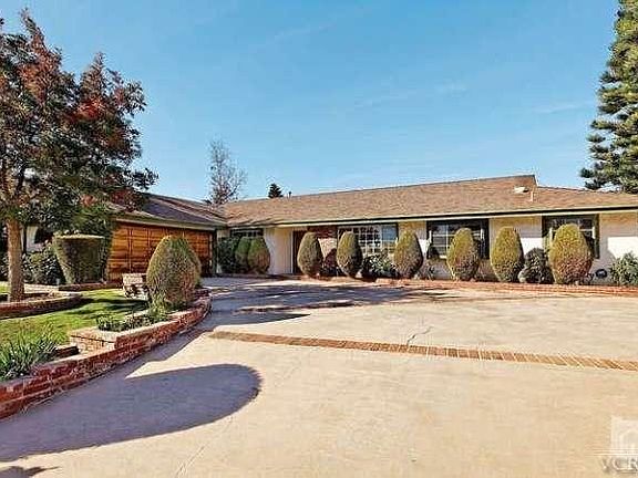 Awesome 3+2.5 ranch-style home featuring an extra-wide driveway for RV parking, brick accented hardscape, a raised-panel double door entry, wood flooring, lighted ceiling fans, a marble-faced raised hearth fireplace in the living room, French doors leading out to the lush & picturesque backyard featuring a sparkling pool & spill-over spa w/a brick accented patio & a built-in BBQ. There are spacious side yards on each side of the house; one w/a grassy area, & the other w/concrete. The inviting family room features a stand-behind wet bar & is open to the breakfast nook w/a chandelier & a country kitchen displaying stainless appliances, & a laundry room off the kitchen w/a half bath. The bedrooms are spacious including a delightful master bedroom w/wood flooring, built-ins in the large closet, & a master bath w/dual sinks. This home has ideal upgrades including dual paned windows & wired for alarm. The 2-car garage has a sectional rollup door, built-ins for storage, and a desk. Wow!