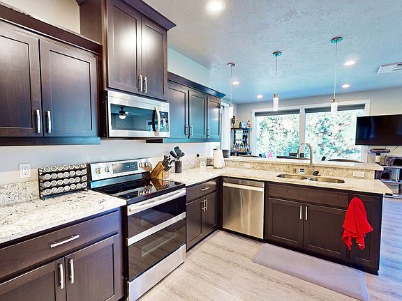 Check out this view from this stunning, newer single level 3bed/2bath home overlooking Roseburg! Quality craftsmanship shows throughout this "Boundary Springs" plan completed by Tabor Building in 2020. Interior features include open concept living space, huge, full height windows to take in the view, luxury vinyl flooring, granite counters and stainless appliances. Exterior features include a covered concrete patio, extensive landscaping, beautiful stonework with fire pit and RV parking. Call today to schedule your private tour!