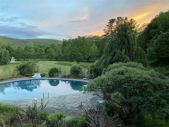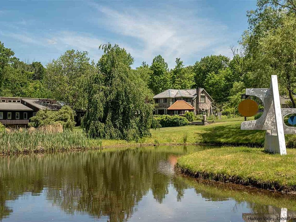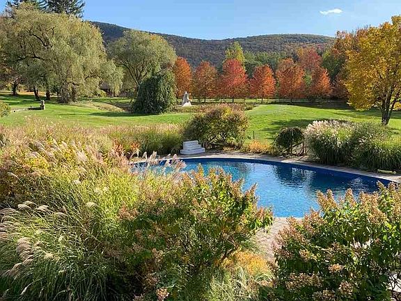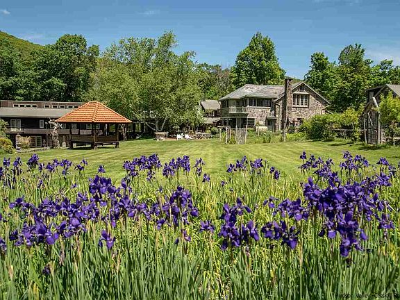 Come Home to Happy Brooks This one of a kind estate built in 1929 and Named Happy Brooks is an Upstate dream come true. The main stone and wood house feels cozy and comfortable but also features dramatic proportions and over 5,000 square feet of living space. A second stone home of approximately 2200 square feet plus a stone cottage with a greenhouse (and an apartment over the garage!) offer plenty of options (9 total bedrooms and 13 bathrooms) for family and friends to share your Shangri-La. The residential structures have the amazing details you would expect from a property built by visionary artists from Woodstock's early 20th Century heyday. Stone fireplaces 15 feet wide, a great room with a ceiling nearly 20 feet high and an incredible glass conservatory in the main house that measures 20 X 14 feet with a 24-foot glass ceiling and an amazing chandelier are just a very few of the unique and original features of this property. Slate and old hardwood floors flow through all the spaces, and around every corner are unique design elements - stained glass, library alcoves and incredible cathedral ceilings. Outside the home is a shady stone courtyard surrounded by lush, established perennial gardens that include a spectacular collection of peonies - many as as old as the house itself. What a perfect place for a morning coffee or evening cocktail and the ideal spot to soak in the beauty and quiet of your 16.7 acres. Intimate mountain views and the flowing brook that borders the property enhance the peace and serenity of this incredibly special place. A pond (with koi fish), a 60,000-gallon oval lined cement pool, 28 X 17 picnic gazebo overlooking an orchard, tree house and 4 stall barn complete your compound. This rare and exceptional offering is only 2 hours from Manhattan. If you have been dreaming about an artsy, boho country refuge, Happy Brooks is it.
