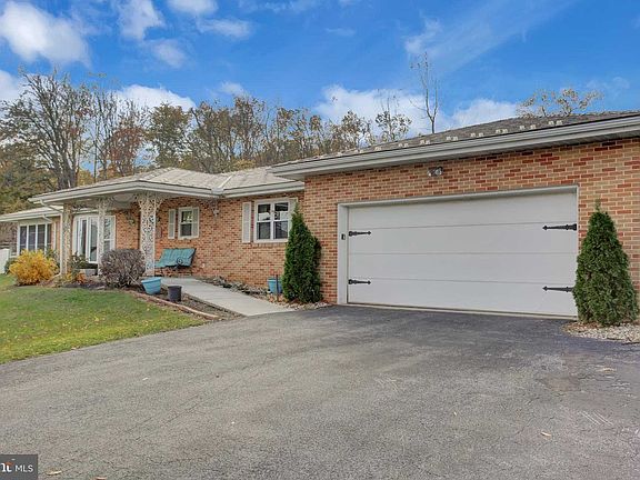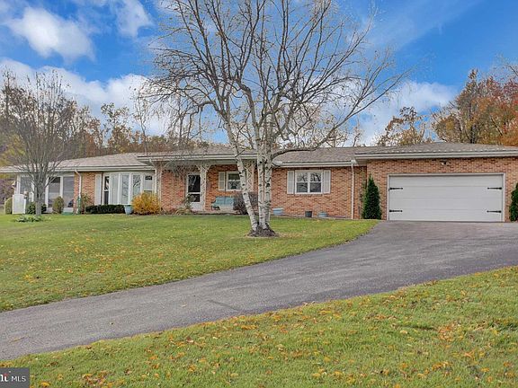 Sprawling 3 bedroom, 2 bath brick ranch on over 2 acres with 2-car garage complete with a mechanics pit! The main living area is open, bright and spacious offering gorgeous views! An enormous kitchen featuring elegant cabinets and a large island, as well as a large dining area and living room provide a delightful flow for entertaining. The dining area leads to an enclosed sunroom with rear yard access. All the bedrooms are nicely sized and feature wood floors. A main floor laundry area provides exterior access, as well as ample space for the washer, dryer and the large laundry sink, plus room for storage. Whether you need additional living space, room for your hobbies or a place for storage, the basement is sure to please! Whole house generator, new windows with a transferable warranty, newer gutters and a roof less than 15 years old. A small town feel with easy access to major routes, shopping and activities. Come and see this home today! (Property Line is the red poles)