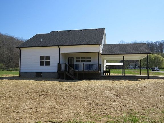 New Construction home sitting on 15.77+/- level acres with over 900 feet of year around creek frontage! This 1526 sq ft home offers 3 bedrooms, 2 full baths, spacious living room/kitchen with custom cabinetry, kitchen island and a window view to die for! The 2 car carport, oversized deck and front porch feature beautifully stained wood railing/posts with tongue and groove ceilings. This property offers an abundance of room to make the perfect mini farm that everyone is looking for. Addtional land available.