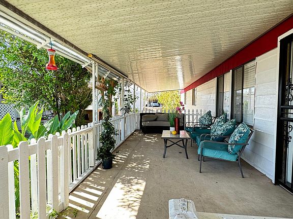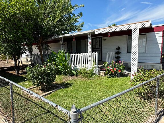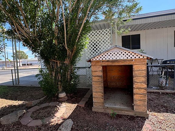 This ALL AGES community features a swimming pool, Spa, fitness center, clubhouse along with tons of community events during holidays! Enjoy the beautiful Arizona sunsets sitting in your front porch while enjoying your well manicured garden. This 2 bedrooms and 2 full baths ALL AGES manufactured home is surrounded by great schools, Shopping and dining, it also features a spacious shed for your belongings and a cute dog house for your pet!