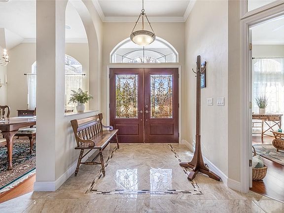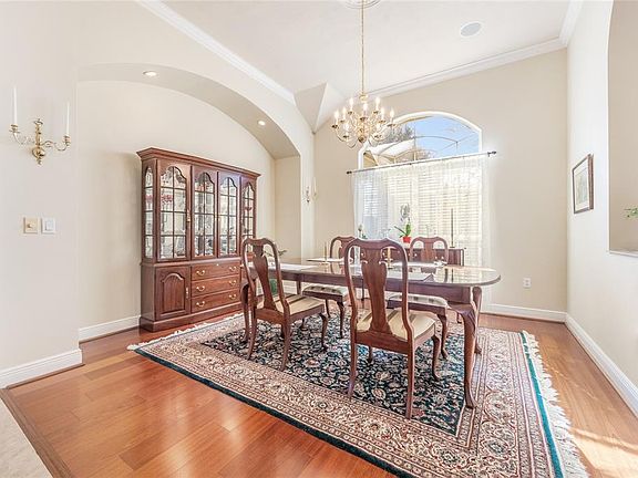 - Ceiling Fan(s), Crown Molding, High Ceilings, Open Floorplan, Solid Surface Counters, Solid Wood Cabinets, Split Bedroom, Thermostat, Walk-In Closet(s)