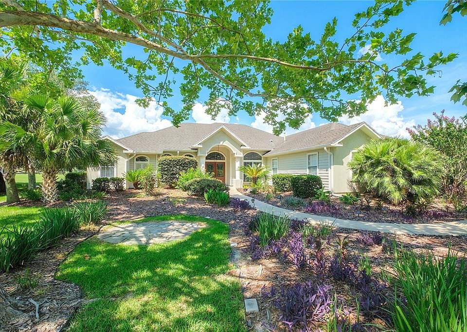 This stunning, gated community, salt water pool home sits on a picturesque 1.15 acre lot and is move-in ready. The home is highlighted by elegant wood and tile floors, granite counters, 11' ceilings, arched doorways and abundant windows radiating outstanding natural light across the spaciously open plan. Prepare meals with flare in your inviting kitchen with recently refinished, raised panel wood cabinets, stainless appliances, gas range, dual ovens, newer dishwasher, built-in wine rack, convenient pantry and nook. The delightfully inviting family room features gorgeous vaulted ceilings, a cozy gas fireplace and stellar windows. The separate living and dining rooms exude elegance with crown molding, a large china cabinet niche and French doors leading to the picturesque screened lanai. Relax, play or entertain on the expansive paver patio beside the sparkling pool and enjoy grilling at the festive bar and summer kitchen while admiring the beautifully manicured back yard. The tranquil primary bedroom includes his and her walk-ins, refinished wood cabinets, dual vanities, glassed-in shower and a jetted tub. French doors lead to the beautifully, bright study w/closet that could easily serve as a 5th bedroom. Additional highlights include 2023 roof, 2014 HVAC, exterior landscape lighting, recently refinished garage flooring, multiple new plumbing fixtures and toilets and newer laundry sink. All of this in an extraordinary community, with excellent schools, down the street from the Market Square Publix shopping and dining and an easy commute to UF, Shands and North Florida Regional Medical Center.