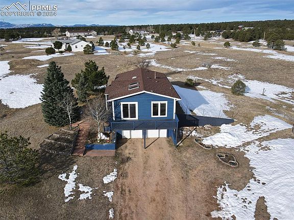 LOCATION IS EVERYTHING! This home on 3.5 acres on the edge of Black Forest is waiting for YOU! Enjoy beautiful sunrises on the wrap around deck and quiet sunsets over Pikes Peak off the master bedroom's deck! 4 bedrooms with 2 up and 2 down, 2 full bathrooms and a half bath and extra flex space in the basement that can be used as a playroom, sitting room, office or whatever you can dream up. Well is 420 ft deep with upgraded 44 gallon tank and associated parts replaced in 2024. Close to plenty of amenities, restaurants, grocery stores and more. NO HOA-- Zoned for horses and livestock--Barn--Parking for Recreational Vehicles--Swamp Cooler--Interior & Exterior Paint 2022--12mm waterproof LVP main level 2024--new insulated garage doors 2024--new hardware throughout--new garbage disposal 2023--terraced garden