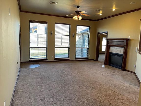 Windmill Farms residence in Choctaw Schools! 3 Bedrooms, 2 Bathrooms, 2 car garage with STORM SHELTER. Open floorplan featuring raised ceilings, crown moldings, ceiling fans, etc. Spacious living room featuring fireplace, modern style full length windows with great wall space & a ceiling fan. Nice kitchen featuring a center island, stainless finished refrigerator, black gas range & dishwasher, a walk-in pantry. Large master suite with backyard outside access and also features a large bathroom area with a whirlpool tub, separate shower, double-sink vanity w/ makeup center & large walk-in closet. Large inside utility room with additional storage. Exterior features a covered front porch, a covered back patio, privacy fencing. Just 10 minutes from Tinker AFB and quick access to I-40.