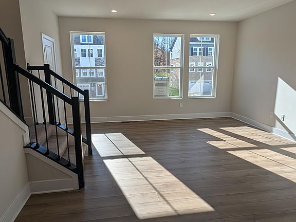 This three-story modern, townhome features a first-floor flex space that can be used as a recreation room or home office.